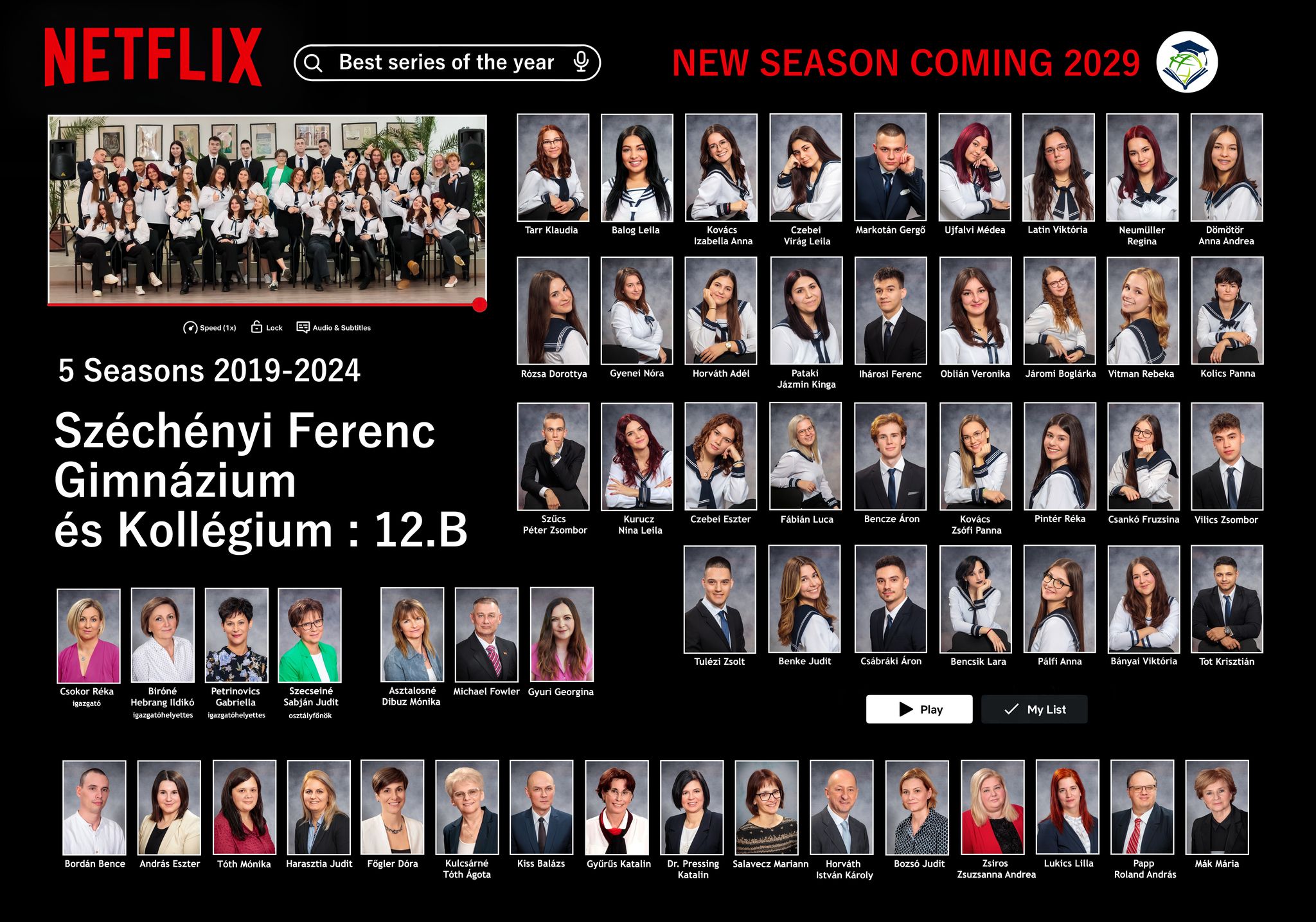 A 12.b osztály tablója. Osztályfőnök: Szecseiné Sabján Judit. Fotó és tabló: Dobor Anita.